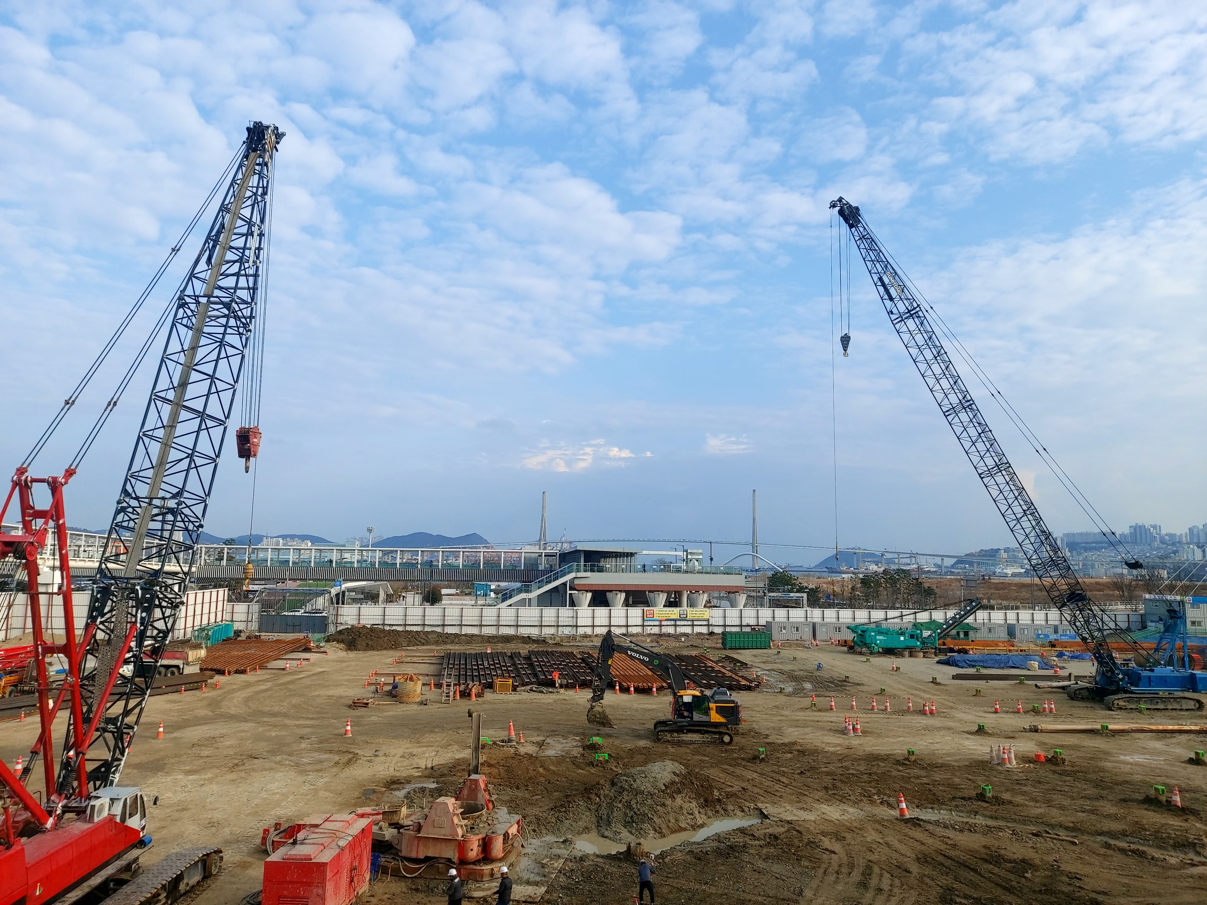 ▲ 휴일인데도 어마어마한 철재 빔들이